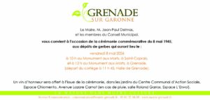 et à 12 h au Monument aux Morts, à Grenade, (départ du cortège à 11 h 45, Halle de Grenade).