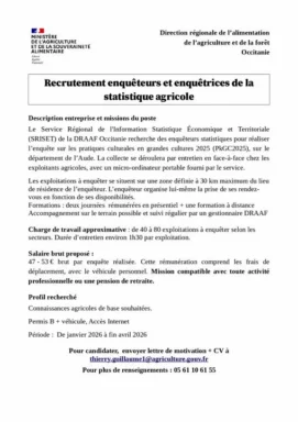 Recherche enquêteurs ou enquêtrices de la statistique agricole publique