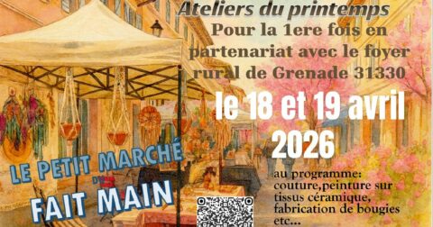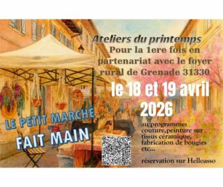 Du 18 Avr 19 Avr Atelier Ateliers de printemps du foyer rural de Grenade et du petit marché du fait main