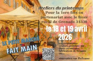 Atelier Ateliers de printemps du foyer rural de Grenade et du petit marché du fait main Du 18 avril 19 avril 2026 26 Rue Victor Hugo, 31330 Grenade